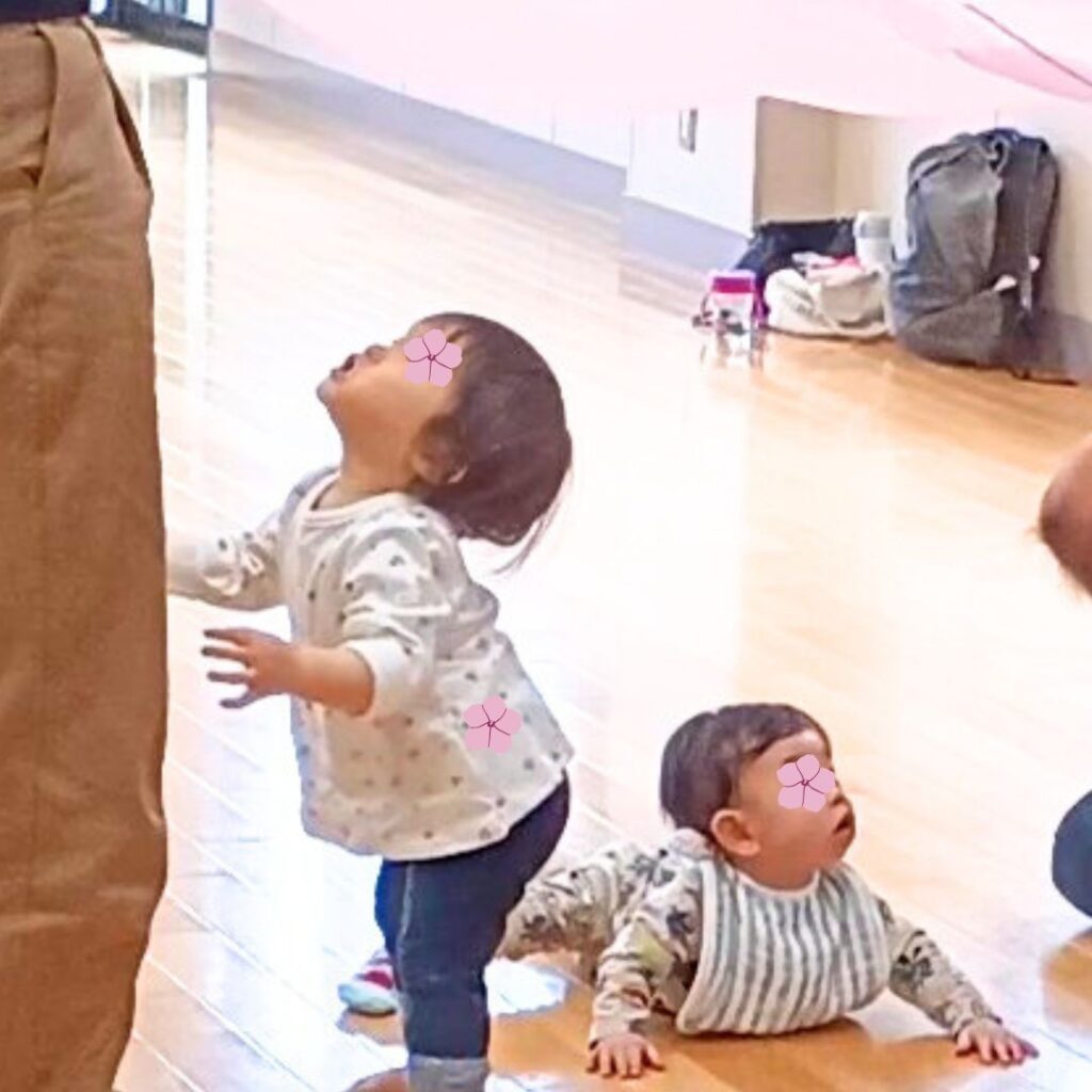 赤ちゃんはしっかり音を感じ、全身で表現しています。