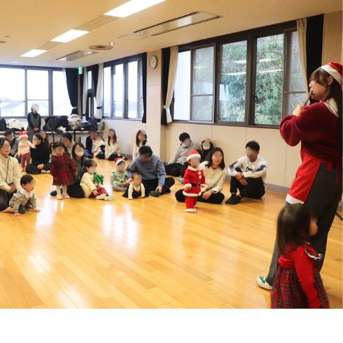 なないろリズムの合同クリスマス会が、今年も無事に終了しました。今回で3回目となるクリスマス会は、毎回ゲストをお迎えして、いつもとは少し違う雰囲気や、普段なじみのない楽器の音色を楽しんでもらえるのが特徴です。