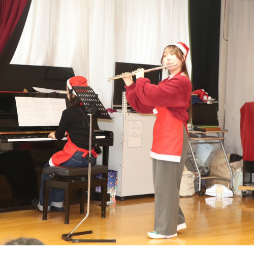 今回は、音大生の秋津沙那さんにフルート演奏で華を添えていただきました。
